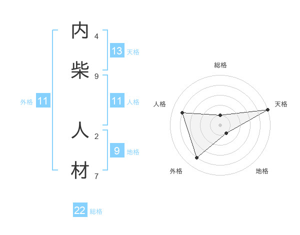 内柴 人材さんの総格は22画の1点!