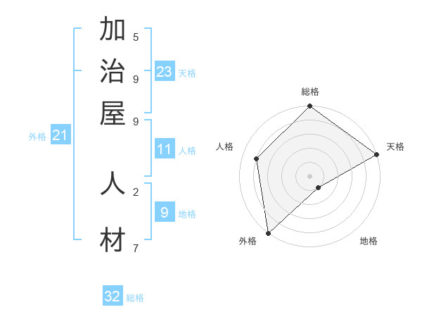 加治屋 人材さんの総格は32画の5点!