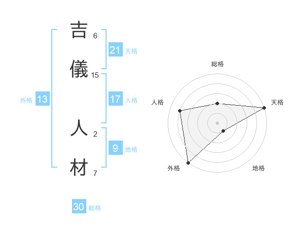 吉儀 人材さんの総格は30画の2点!