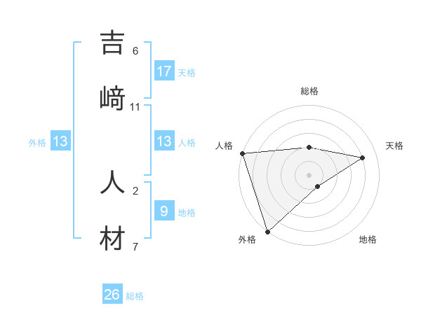 吉﨑 人材さんの外格は13画の5点!