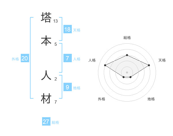 塔本 人材さんの総格は27画の3点!