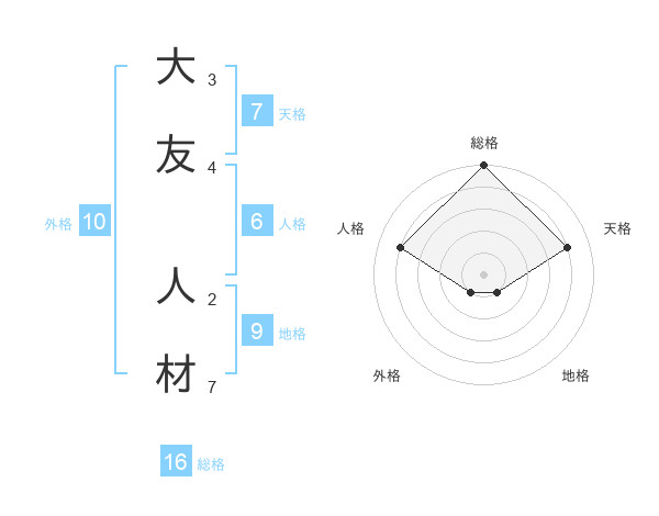 大友 人材さんの総格は16画の5点!