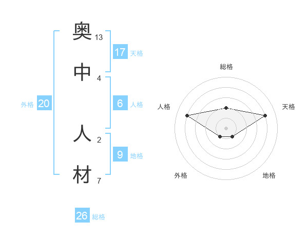 奥中 人材さんの総格は26画の2点!