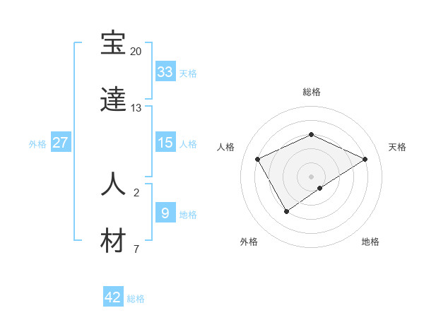 宝達 人材さんの総格は42画の3点!