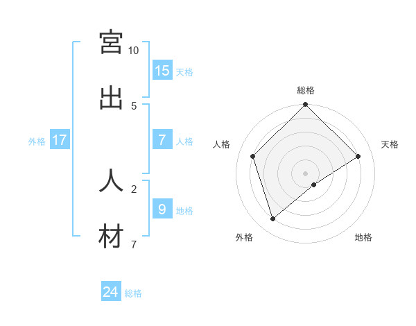 宮出 人材さんの総格は24画の5点!