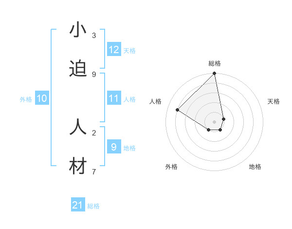 小迫 人材さんの総格は21画の5点!
