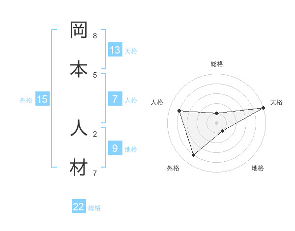 岡本 人材さんの総格は22画の1点
