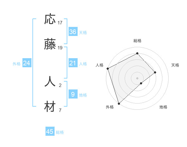 応藤 人材さんの総格は45画の4点!