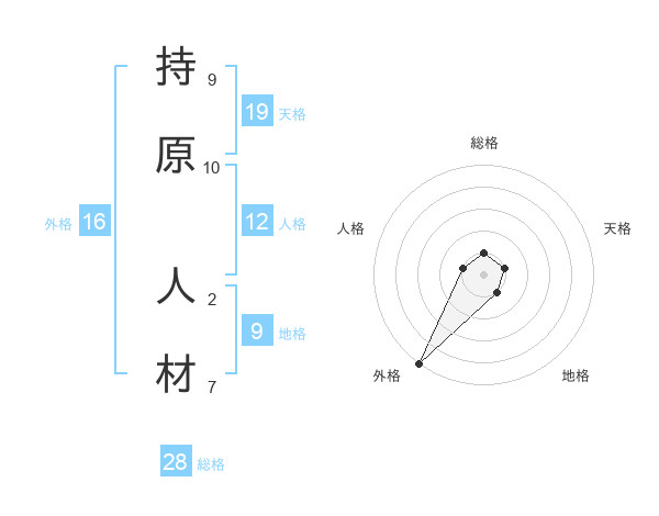 持原 人材さんの外格は16画の5点!