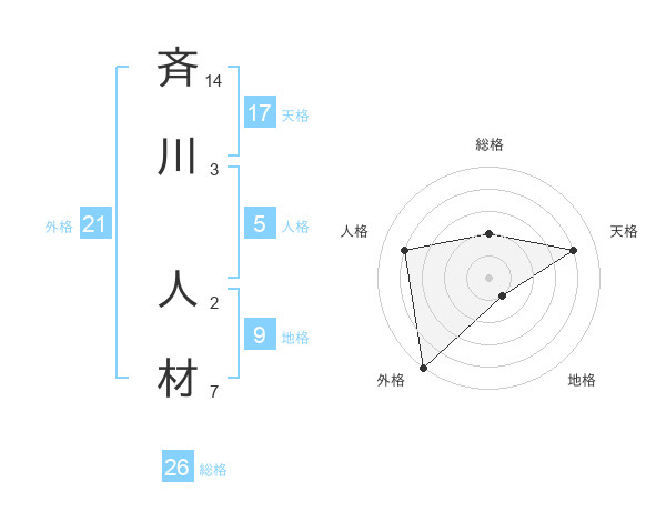 斉川 人材さんの外格は21画の5点!