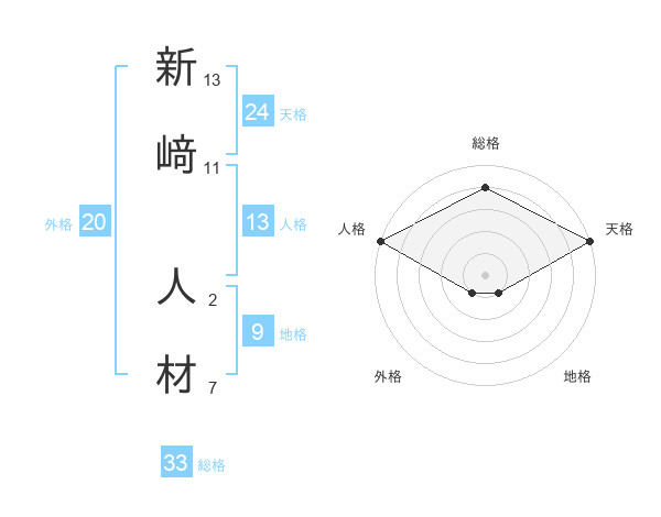 新﨑 人材さんの総格は33画の4点!