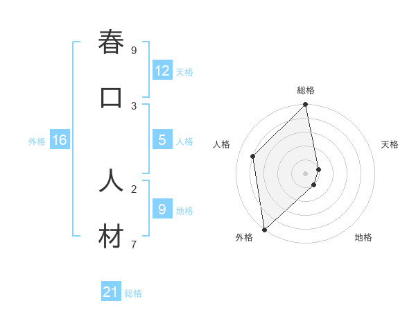 春口 人材さんの総格は21画の5点!
