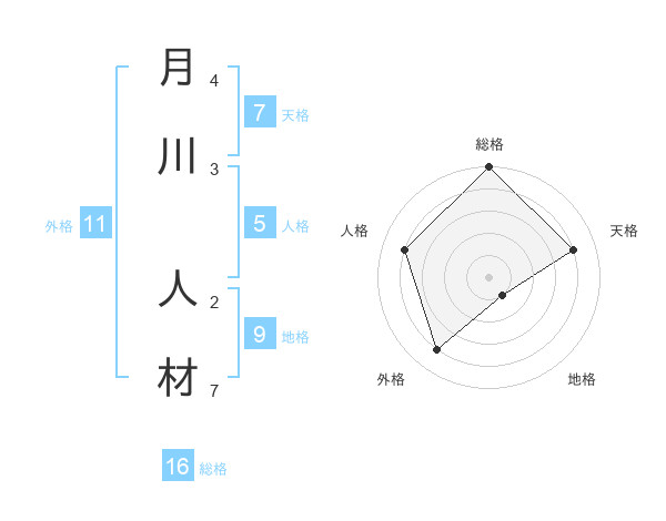 月川 人材さんの総格は16画の5点!