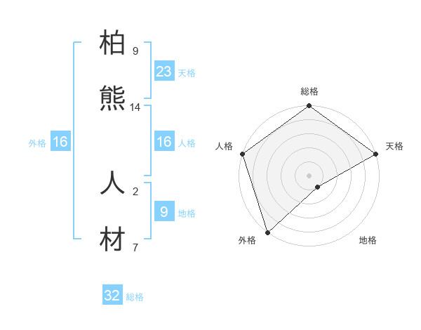 柏熊 人材さんの天格は23画の5点!