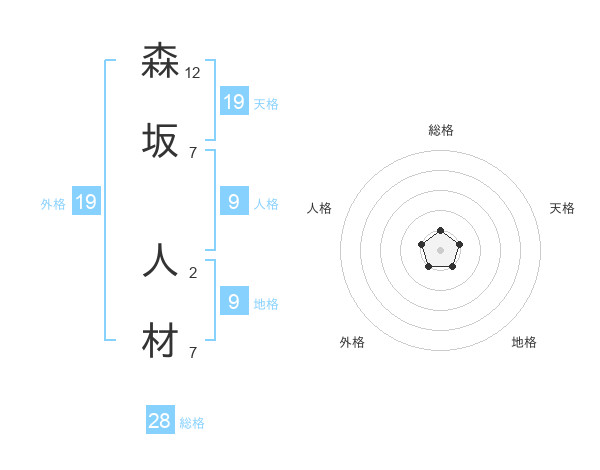 森坂 人材さんの総格は28画の1点!