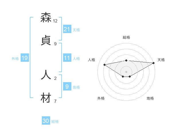 森貞 人材さんの天格は21画の5点!