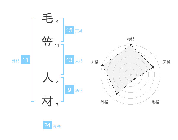 毛笠 人材さんの総格は24画の5点!
