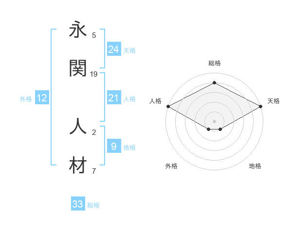 永関 人材さんの総格は33画の4点!