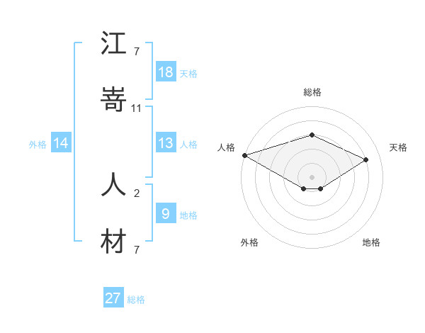江嵜 人材さんの総格は27画の3点!