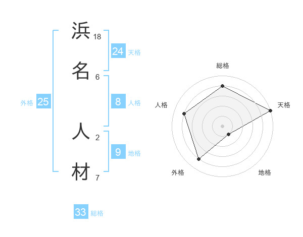 浜名 人材さんの天格は24画の5点!