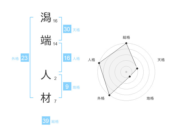 潟端 人材さんの総格は39画の5点!