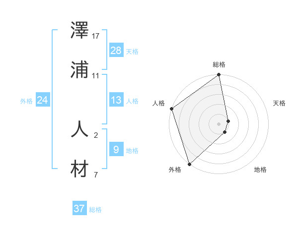 澤浦 人材さんの総格は37画の5点!