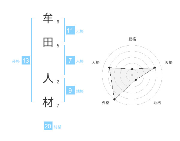 牟田 人材さんの外格は13画の5点!