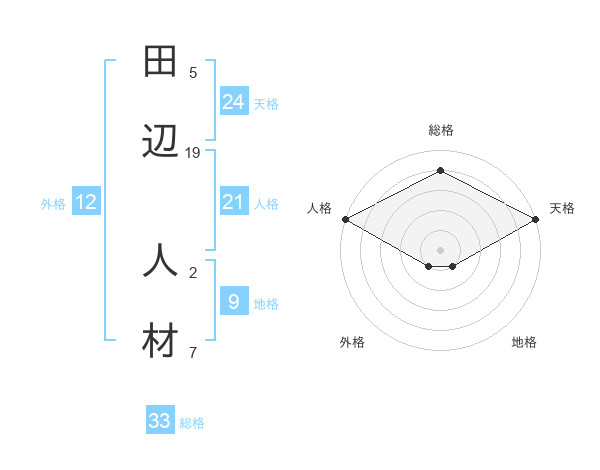 田辺 人材さんの総格は33画の4点!