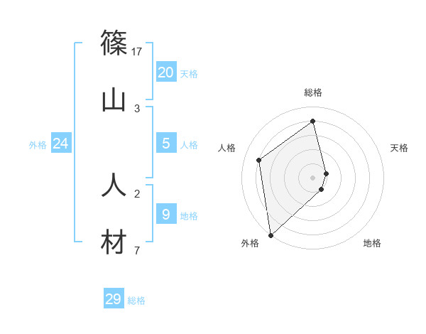 篠山 人材さんの総格は29画の4点!
