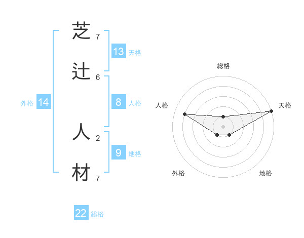 芝辻 人材さんの総格は22画の1点!