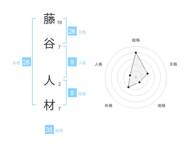 藤谷 人材さんの総格は35画の4点!