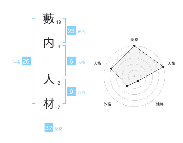藪内 人材さんの総格は32画の5点!