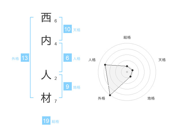 西内 人材さんの外格は13画の5点!