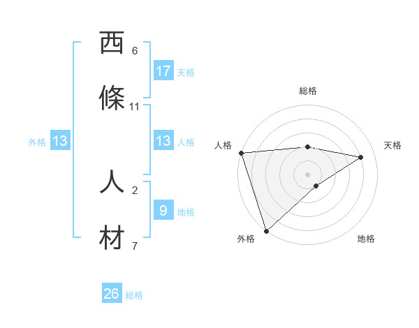 西條 人材さんの総格は26画の2点!