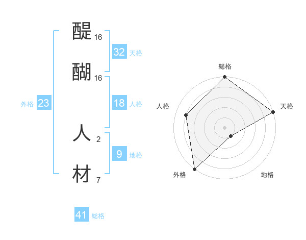 醍醐 人材さんを姓名の画数から五運を鑑定