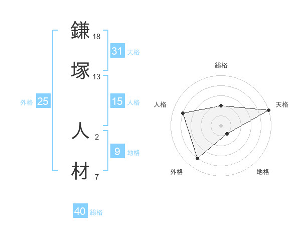 鎌塚 人材さんを姓名の画数から五運を鑑定
