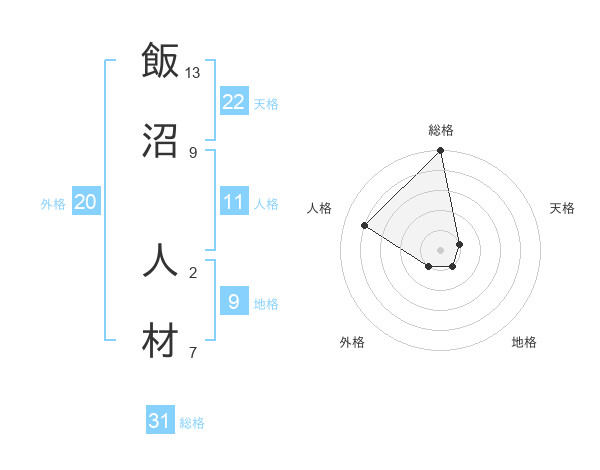 飯沼 人材さんの総格は31画の5点!