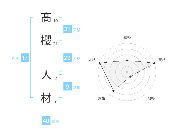 髙櫻 人材さんを姓名の画数から五運を鑑定