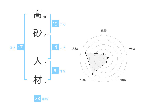 髙砂 人材さんの総格は28画の1点!