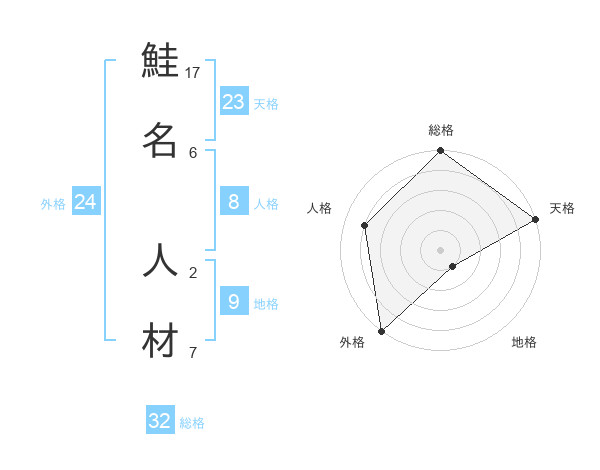鮭名 人材さんを姓名の画数から五運を鑑定