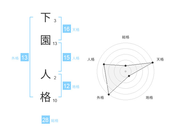 下園 人格さんの外格は13画の5点!