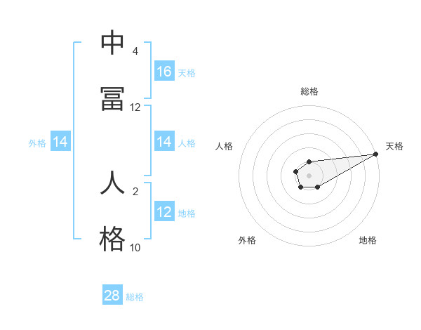 中冨 人格さんの天格は16画の5点!