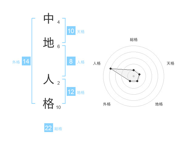 中地 人格さんの総格は22画の1点!