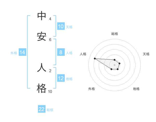 中安 人格さんの総格は22画の1点!
