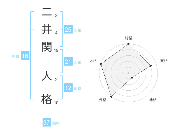 二井関 人格さんの総格は37画の5点!