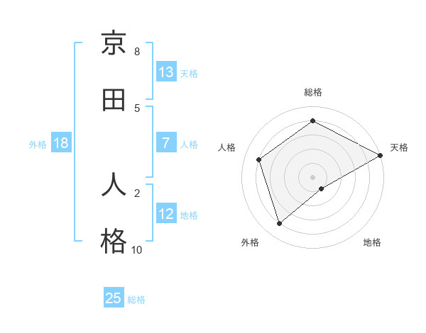京田 人格さんの天格は13画の5点!