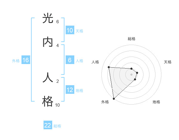 光内 人格さんの外格は16画の5点!