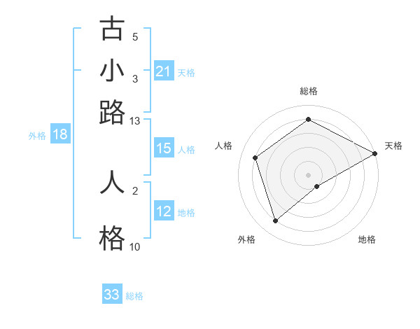 古小路 人格さんの天格は21画の5点!