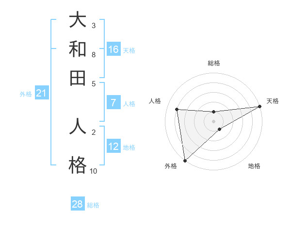 大和田 人格さんの総格は28画の1点!
