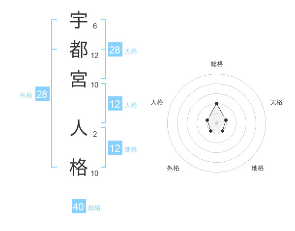 宇都宮 人格さんを姓名の画数から五運を鑑定